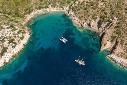En avril et mai 2024, l’expédition se déroule en Grèce. Une première mission à laquelle se joint le catamaran We Explore pour soutenir et accompagner les scientifiques et équipes d’Under the Pole.